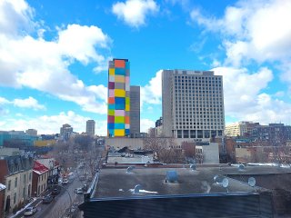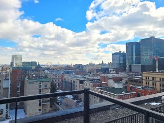 *** Autobus et Piste cyclable face à l'immeuble, à qq pas de: Métro, Gare d'autobus, Navette pour l'aéroport, Grande Bibliothèque... Accès rapide aux axes routiers, Pont Jacques-Cartier...